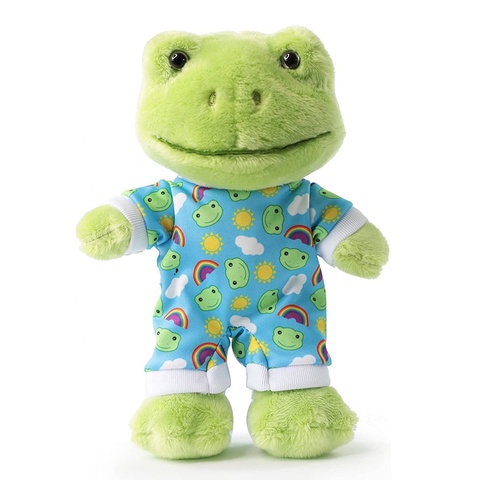 Venta al por mayor, muñeco de peluche esponjoso, adorable rana verde de dibujos animados, juguete de peluche para guardería y decoración del hogar