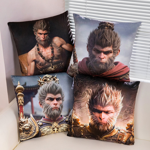 Decoración del hogar 45*45cm Black Myth Wukong funda de almohada decorativa sofá funda de almohada de felpa suave